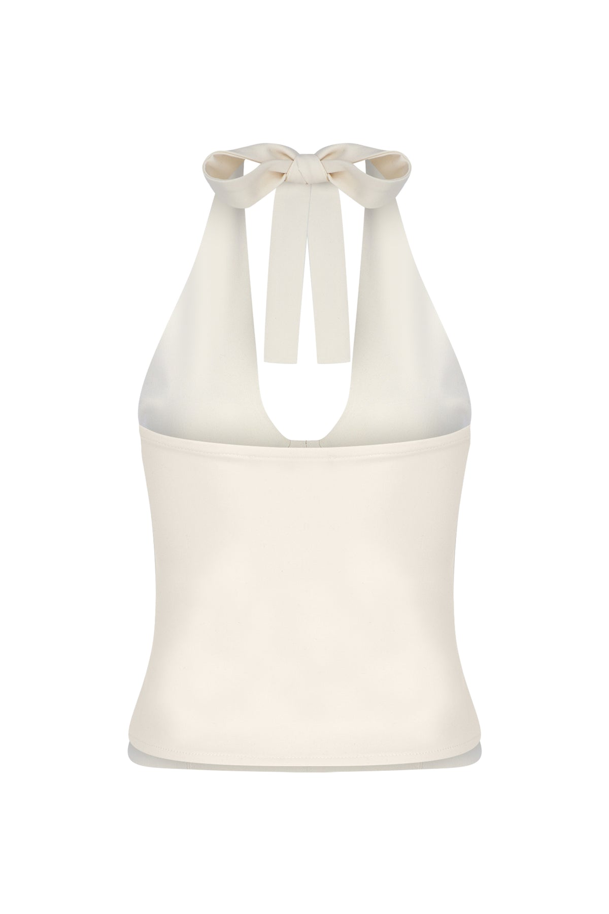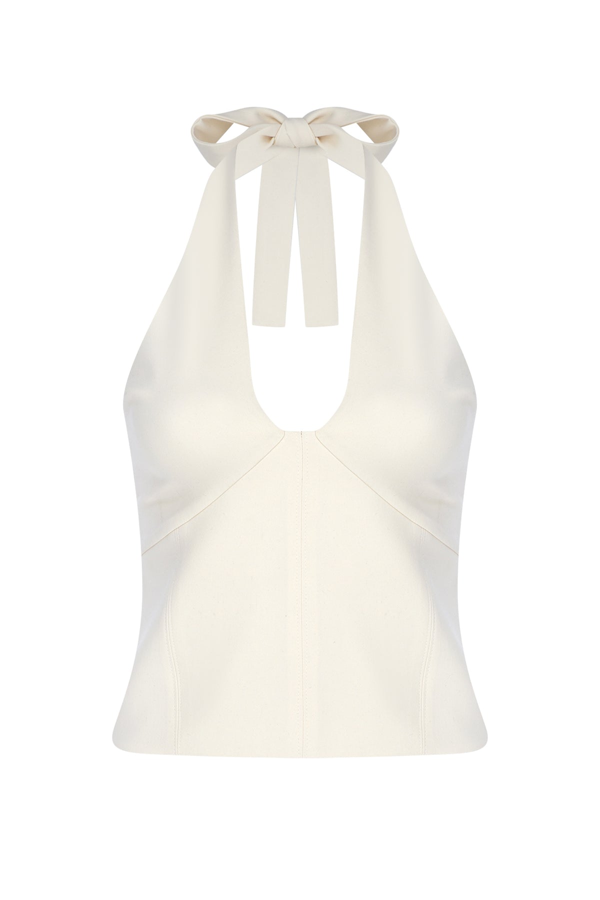 SELMACILEK Ecru Halter Neck Blouse, hand-stitched for the FW25/26 collection.