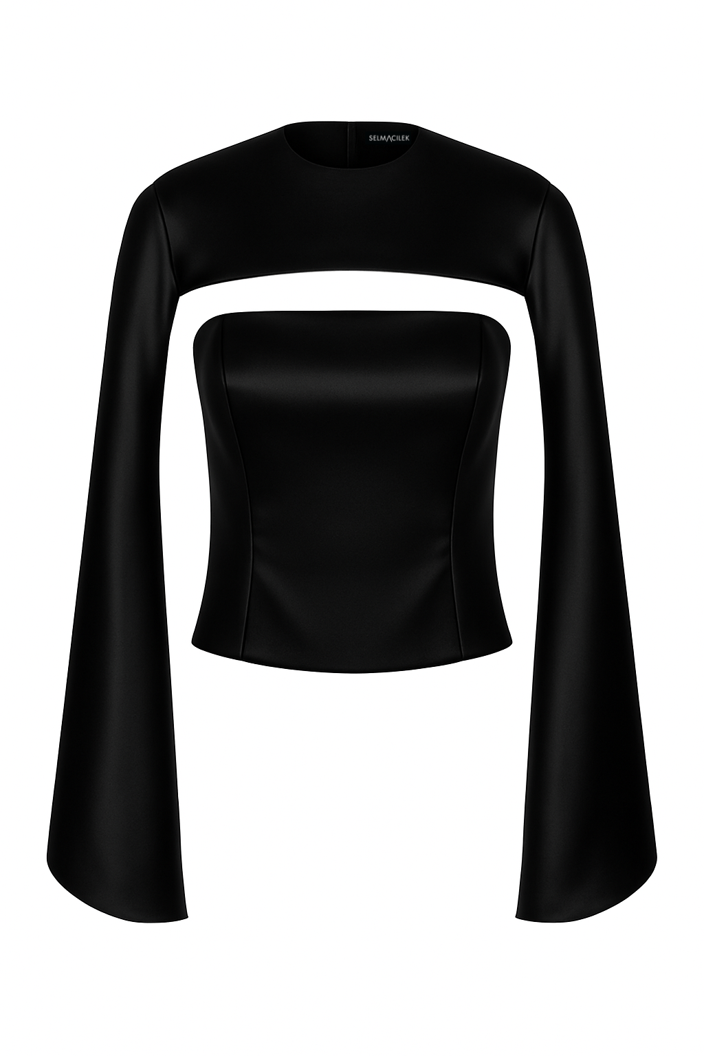 SELMACILEK Black Long-Sleeve Bolero Blouse, hand-stitched for the FW25/26 collection.