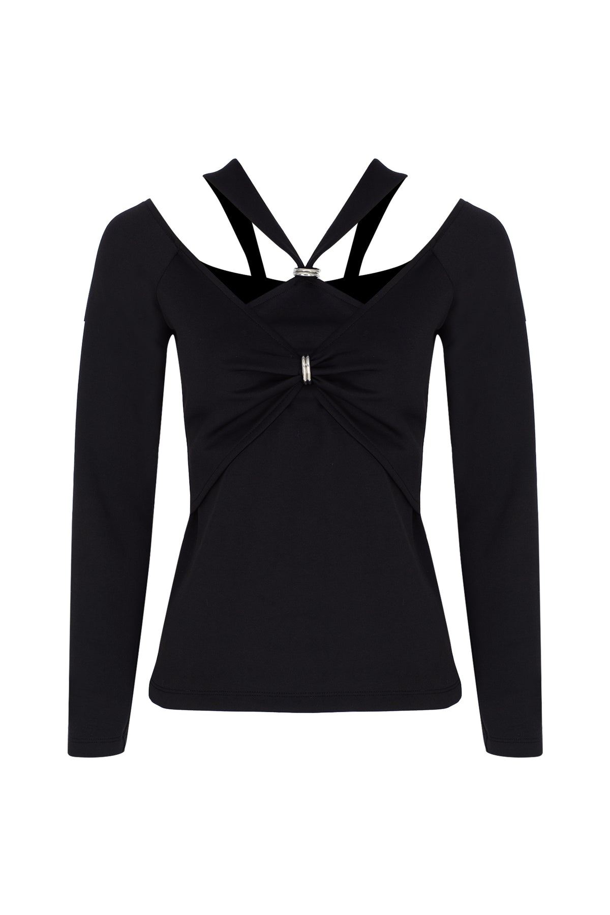 SELMACILEK Black Long-Sleeve Blouse with Neck Accessory Detail, hand-stitched for the FW25/26 collection.