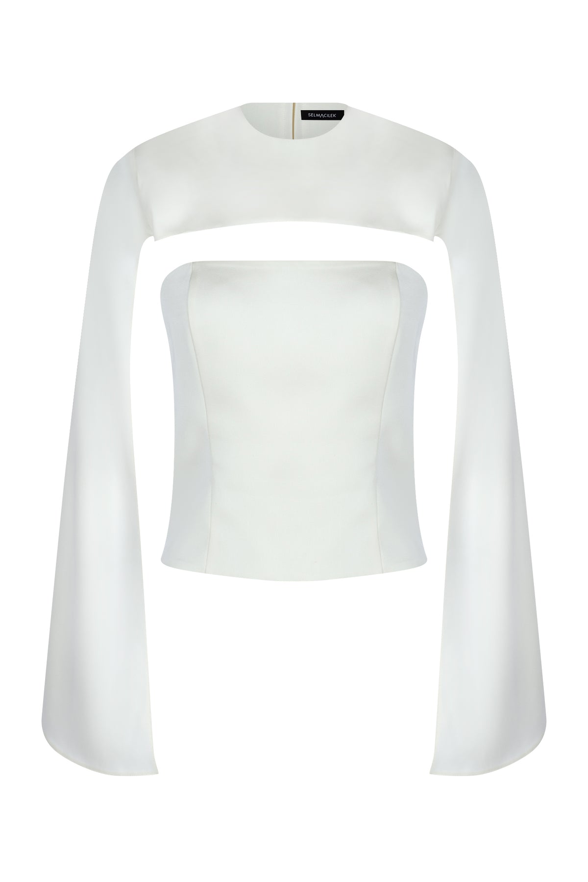 SELMACILEK Ecru Long-Sleeve Bolero Blouse, hand-stitched for the FW25/26 collection.