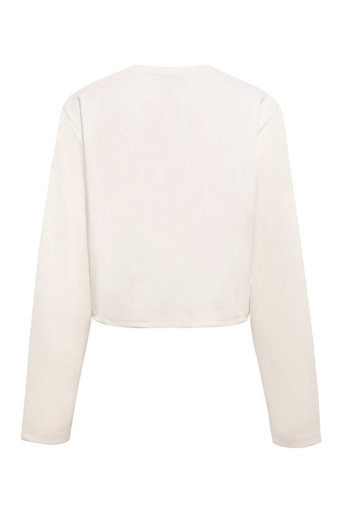 SELMACILEK Ecru Long-Sleeved T-Shirt with Button Details, hand-stitched for the Spring/Summer 2025 collection.