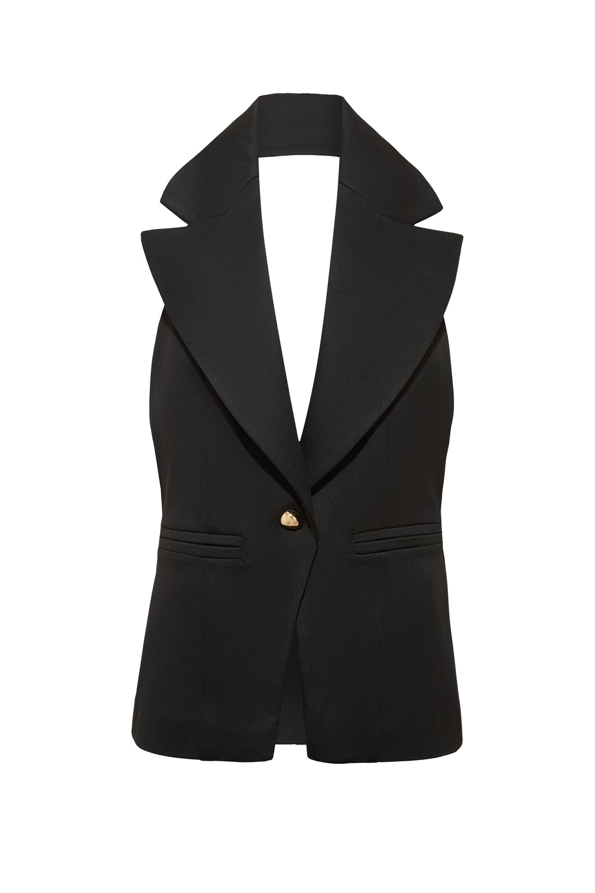 SELMACILEK Black Halter Neck Vest with Button Details, hand-stitched for the FW25/26 collection.
