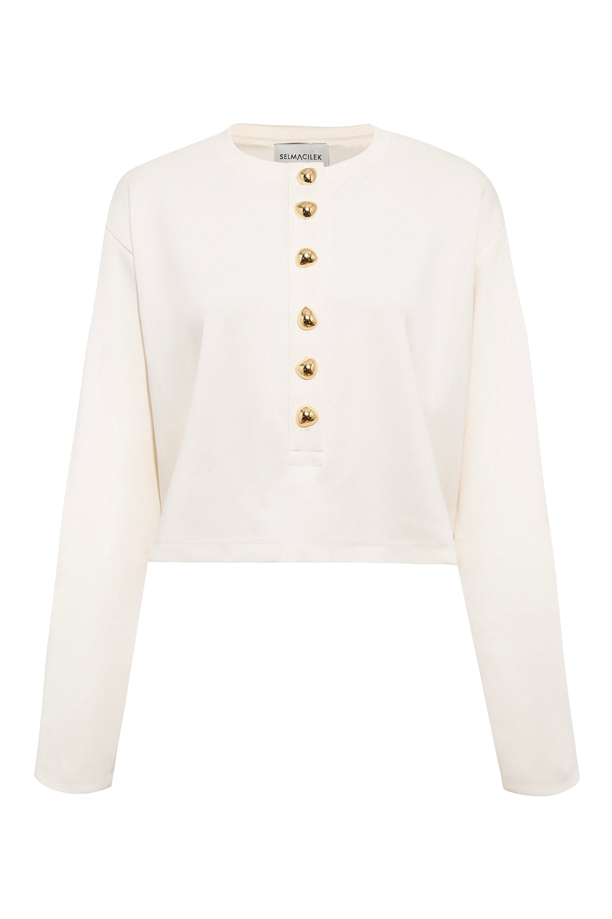 SELMACILEK Ecru Long-Sleeve T-Shirt, hand-stitched for the Spring/Summer 2025 collection.
