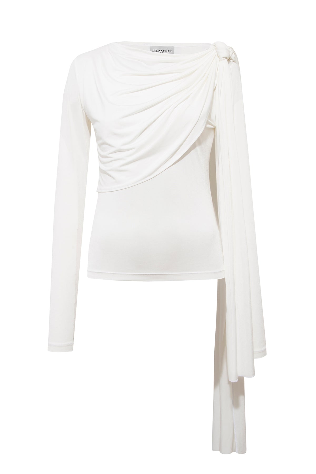 SELMACILEK Ecru Long-Sleeve Blouse with Shoulder Accessory Detail was handcrafted for the FW25/26 collection.