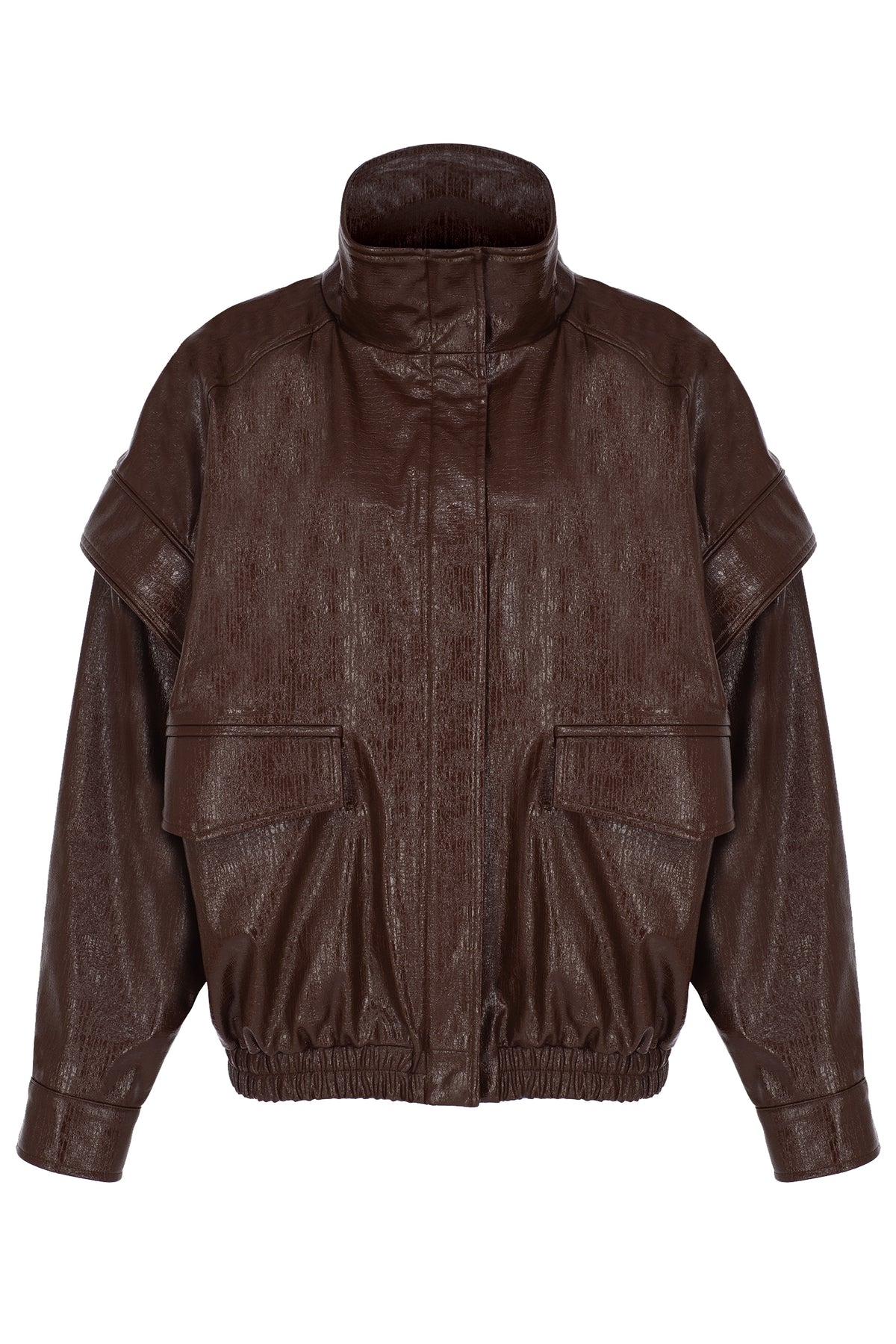 SELMACILEK Brown Detachable-Sleeve Vegan Leather Jacket, hand-stitched for the FW25/26 collection.