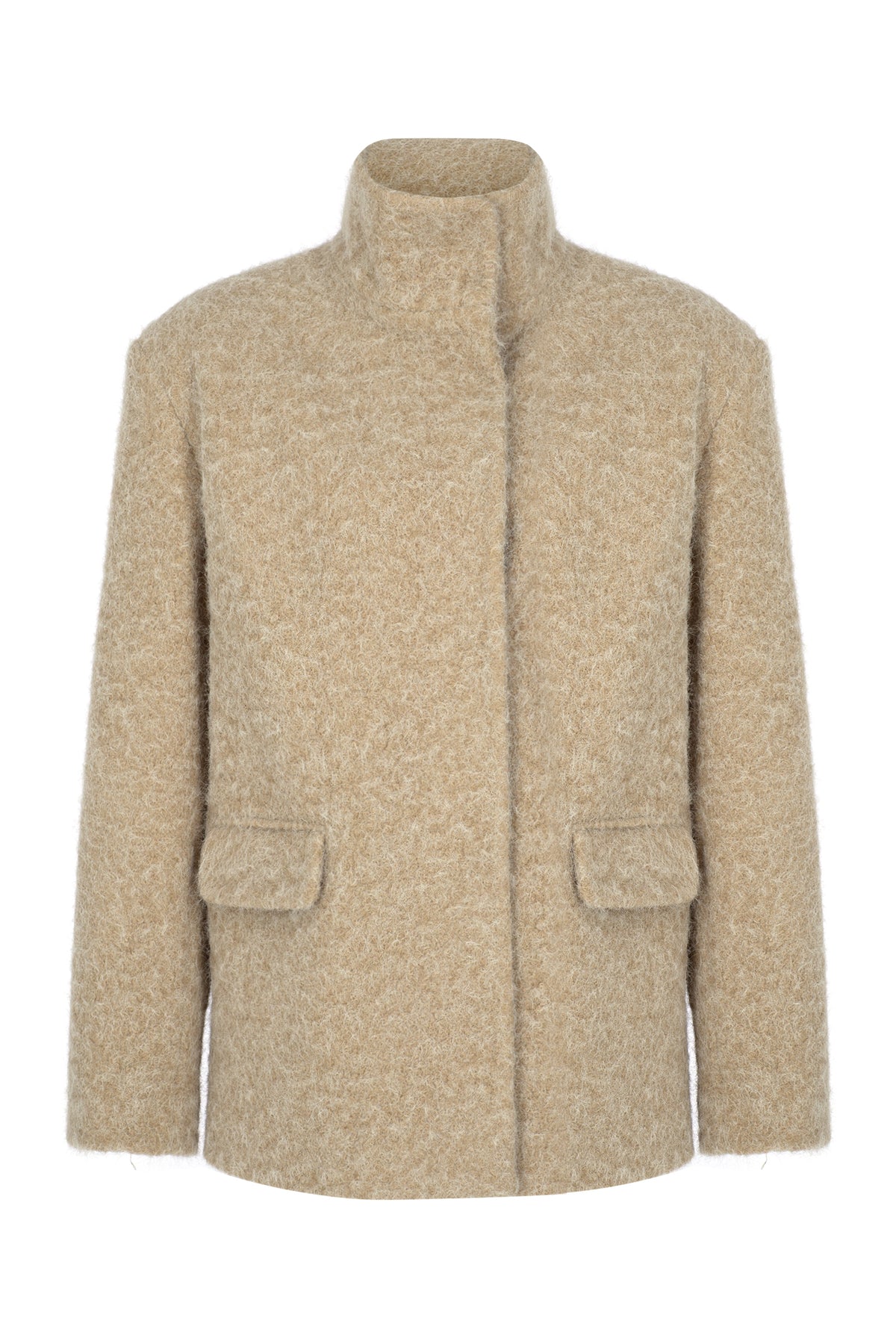 SELMACILEK Beige Wool Detailed Short Coat, hand-stitched for the FW25/26 collection.