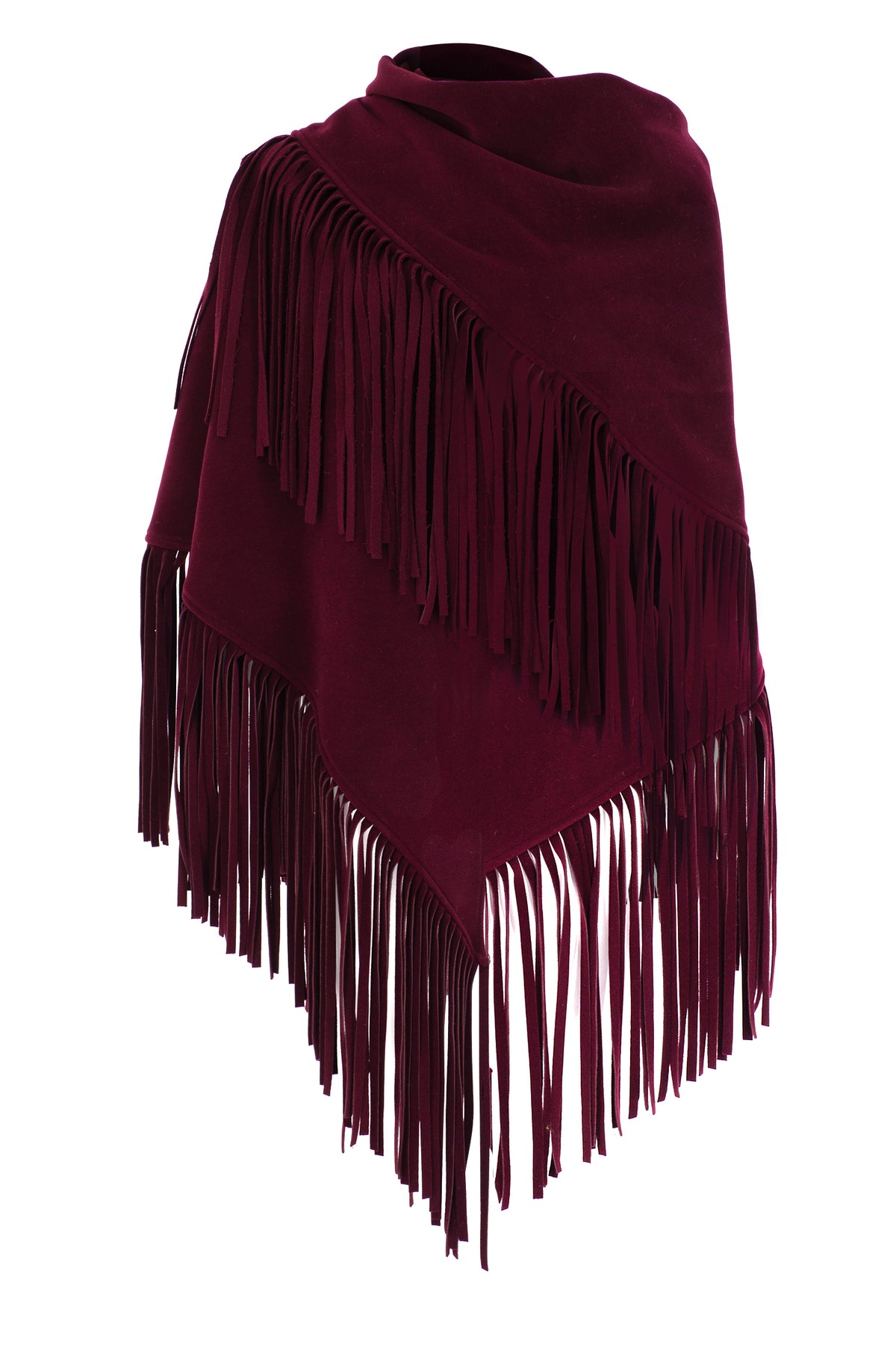 SELMACILEK Burgundy Fringed Shawl, hand-stitched for the FW25/26 collection.