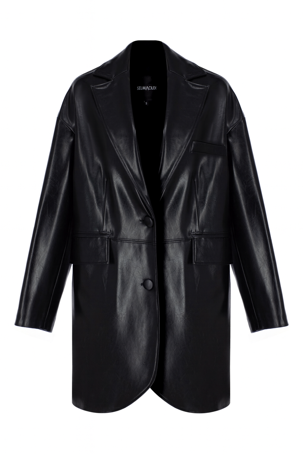 SELMACILEK Black Vegan Leather Jacket, hand-stitched for the FW25/26 collection.