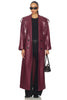 SELMACILEK Burgundy Vegan Leather Long Trench Coat is hand tailored for the SS25 collection.