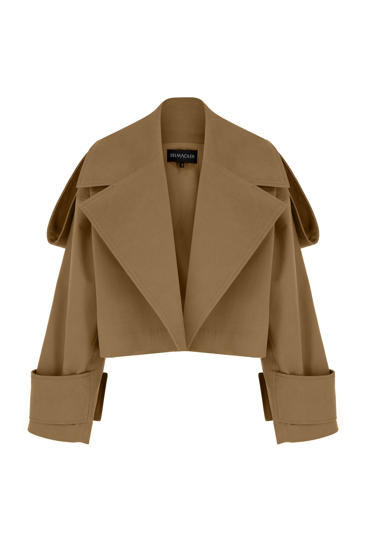 SELMACILEK Camel Canvas Shoulder Detailed Jacket is hand tailored for the Prefall25 collection.