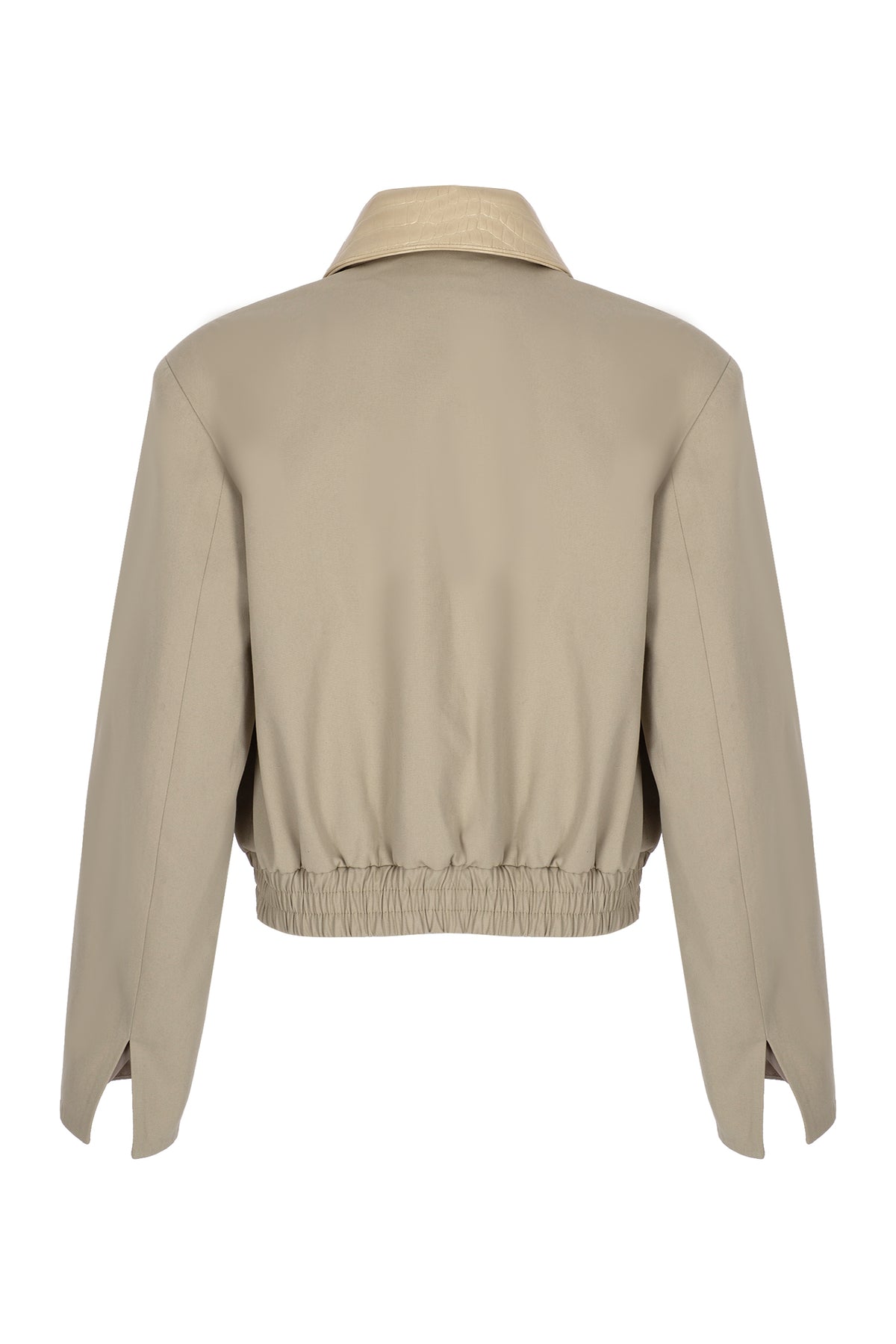 SELMACILEK Beige Bomber Jacket with Crocodile-Print Collar Detail, hand-stitched for the FW25/26 collection.
