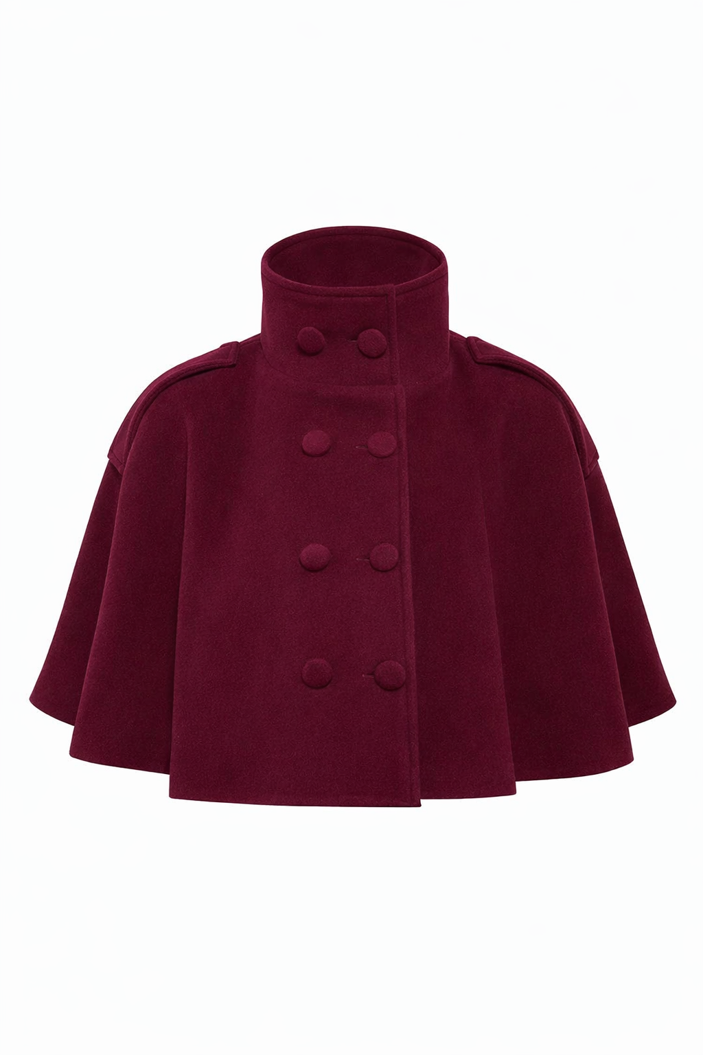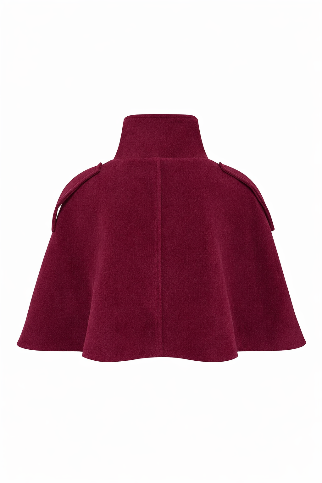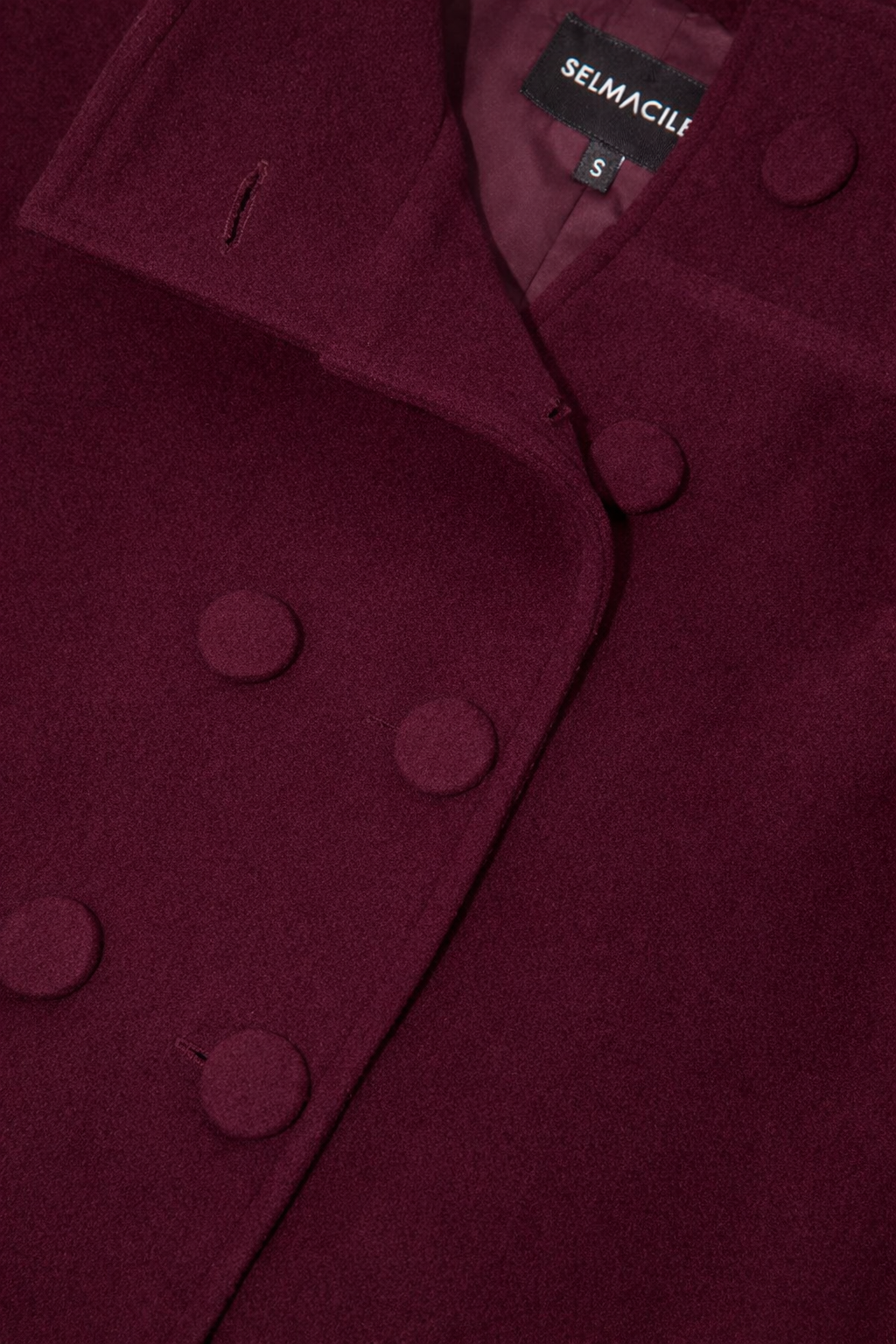SELMACILEK Burgundy Cropped Melton Jacket with Button Details, hand-stitched for the FW25/26 collection.