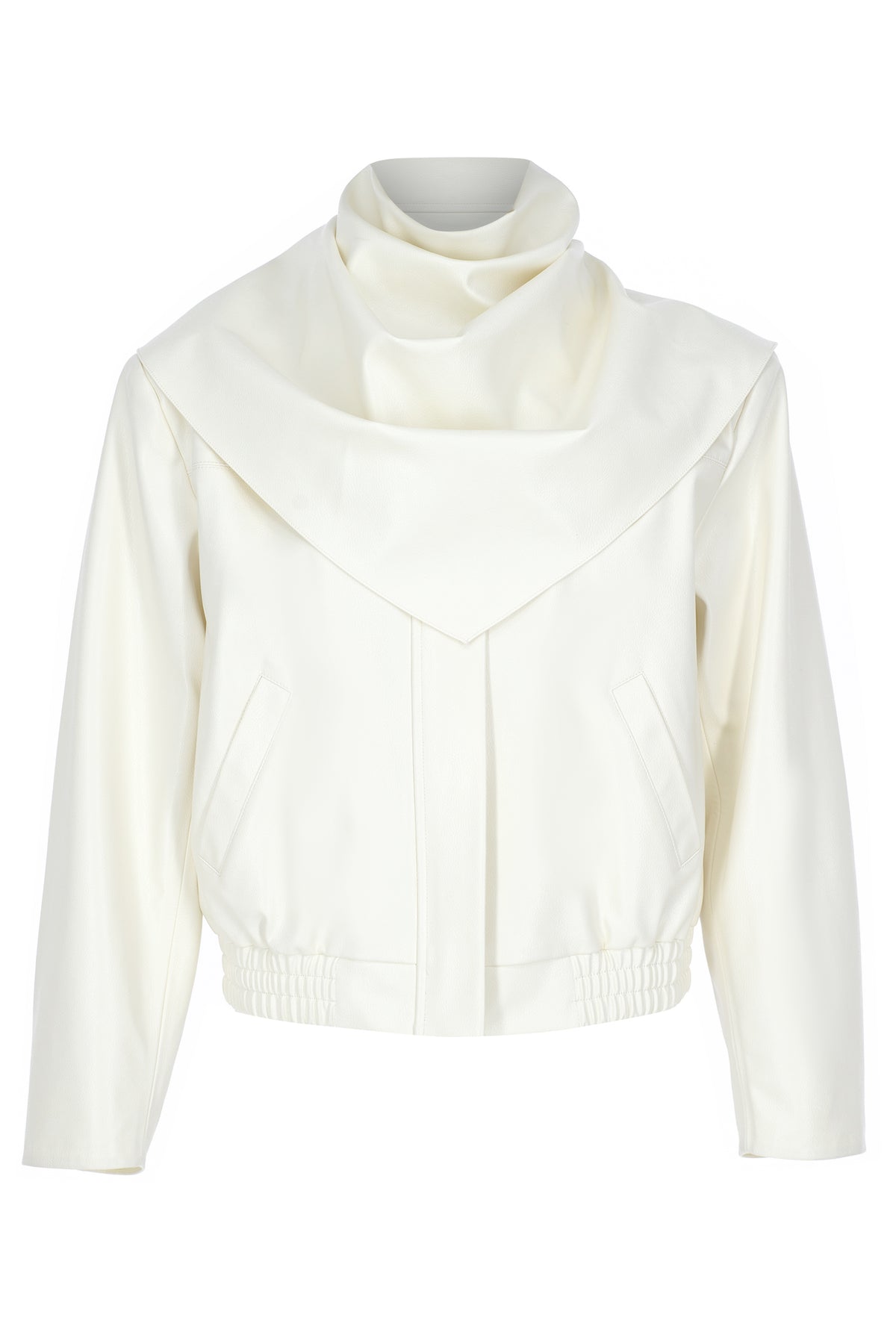 SELMACILEK Ecru Vegan Leather Jacket with Neck Leather Shawl Detail, hand-stitched for the FW25/26 collection.