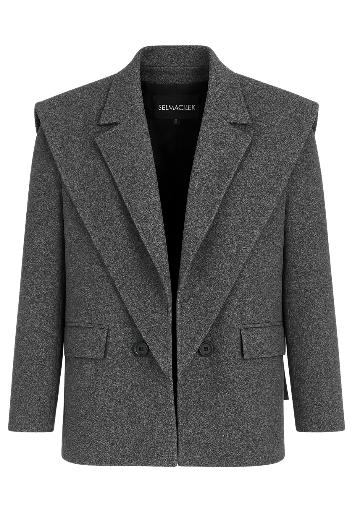 SELMACILEK GRAY SHOULDER DETAILED BLAZER JACKET is hand tailored for the FW23 collection.