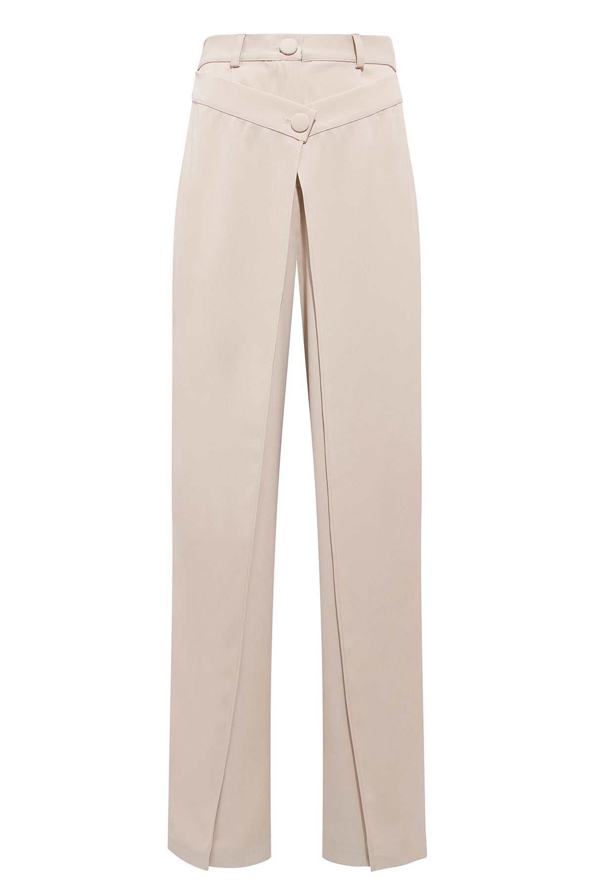 SELMACILEK Beige Scarf-Like Drape High Waisted Pants Handcrafted for the SS26 Collection.