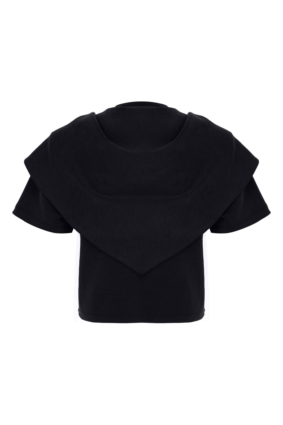 SELMACILEK Black Short Sleeve T-shirt with Shawl Detail. is hand tailored for the SS25 collection.
