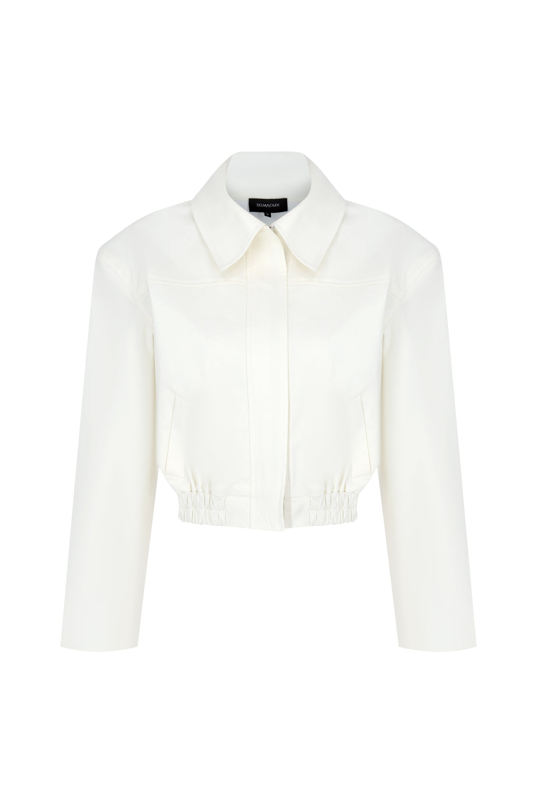 SELMACILEK Ecru Canvas Bomber Jacket is hand tailored for the Resort24 collection.